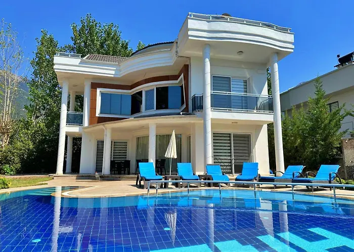 **Valley Villa - 4 Bedroom Private Villa in Fethiye** redefines luxury and comfort, providing an elegant retreat for discerning travelers. Nestled amid the lush scenery of Fethiye, this villa features four spacious and tastefully decorated bedrooms, each equipped with premium bedding and modern en-suite facilities, ensuring a restful stay. The villa is beautifully appointed to allow natural light to flood the interiors, complemented by stunning views of the surrounding mountains and lush gardens.